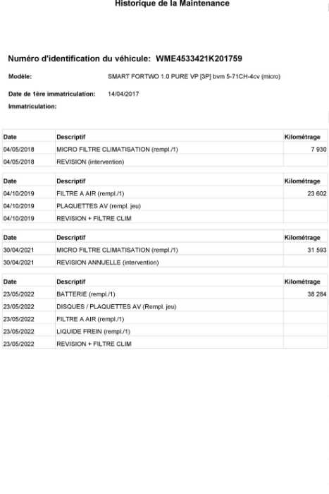 Seulement 500 km depuis le dernier entretien Smart - Véhicule totalement entretenu par le concessionnaire SMART - historique entretien complet